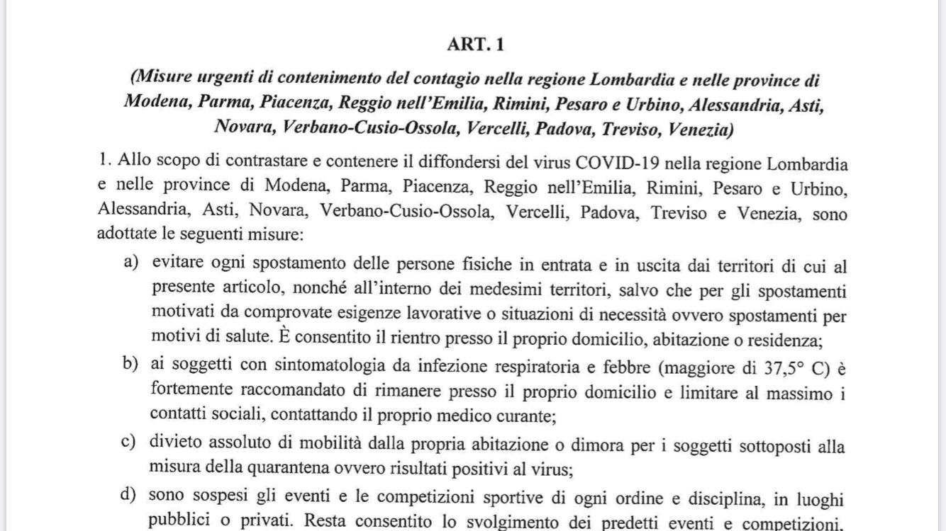 Dal 08/03/2020 al 30/04/2020